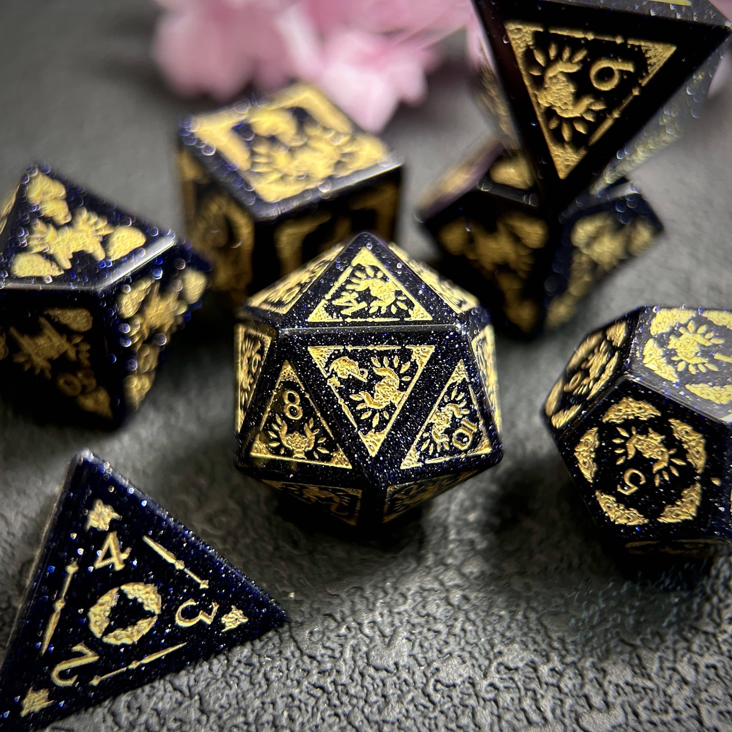 Blue Sandstone Gemstone Dice Set, Cloudward: Dragon’s Throne & Edge, 7 Pieces