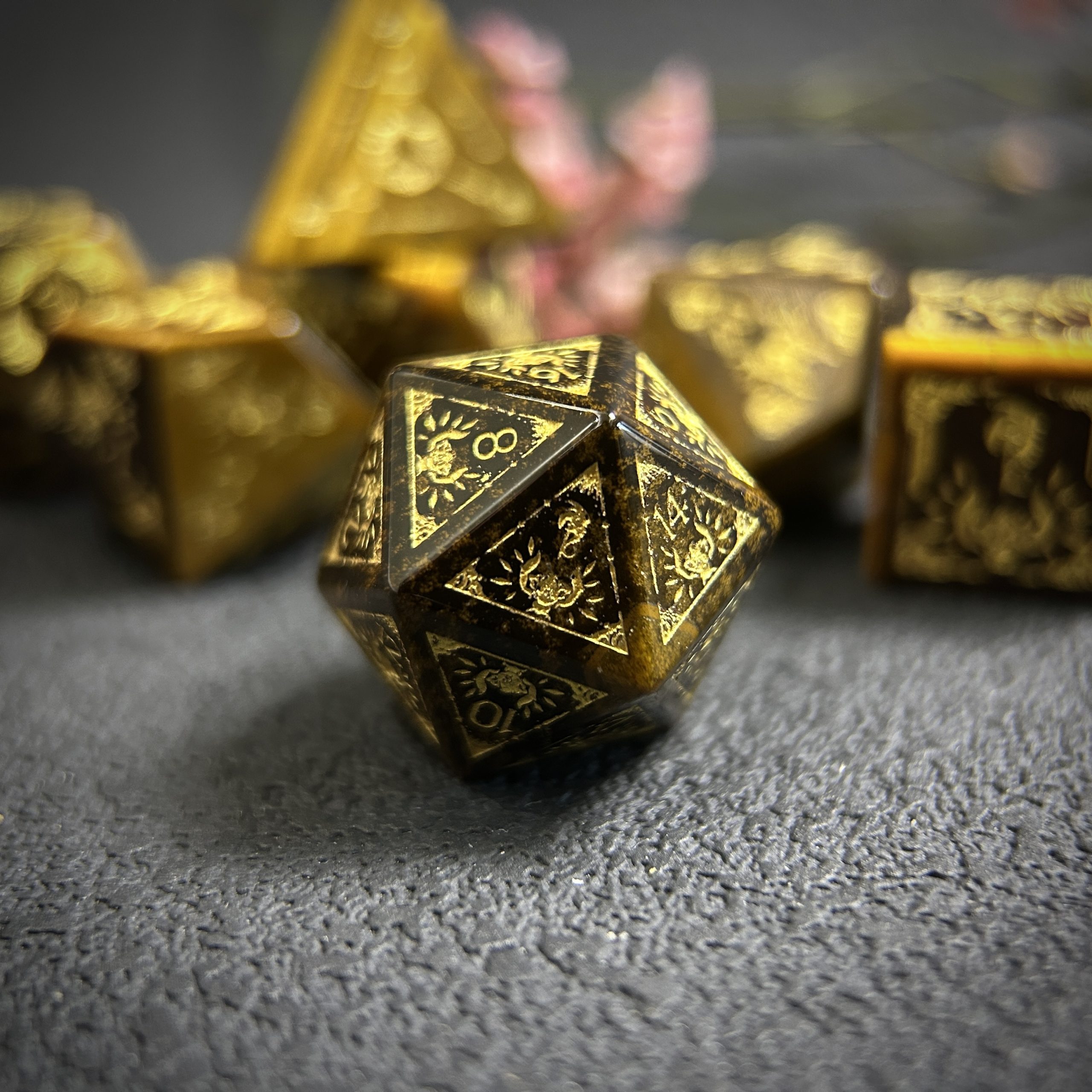 Tiger’s Eye Gemstone Dice Set, Cloudward: Dragon’s Throne & Edge, 7 Pieces DND