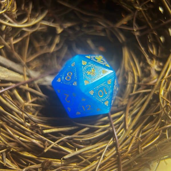 Blue Sandstone Gem Dice | Gaming Art Collectible Roll with Mystical Power
